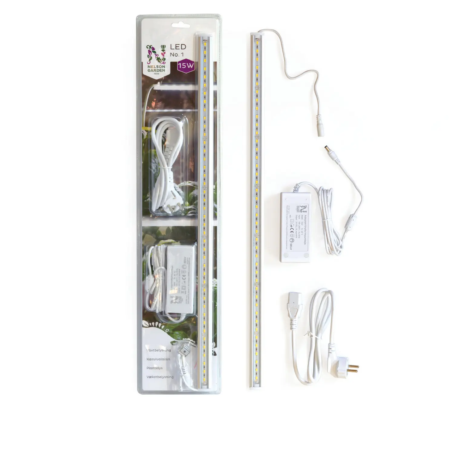 Energisnål växtbelysning i form av en LED-ramp på 15W med strömadapter. LED-rampen har ett kallvitt ljus (6400 Kelvin) som passar utmärkt till förodlingsbelysning vid frösådd tidigt på året och som extraljus vid odling inomhus. Växtbelysningen passar också bra för växter i tillväxt, övervintring av medelhavsväxter. För bästa resultat, låt belysningen var tänd 12–16 timmar/dygn.
